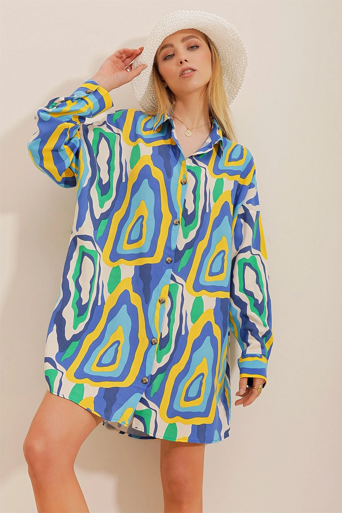 Trend Alaçatı Stili Kleid – Blau – A-Linie Damen Kleider 716405120