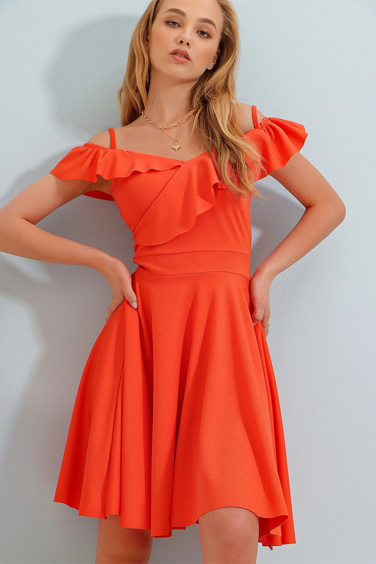 Trend Alaçatı Stili Kleid – Orange – A-Linie Damen Kleider 297849371