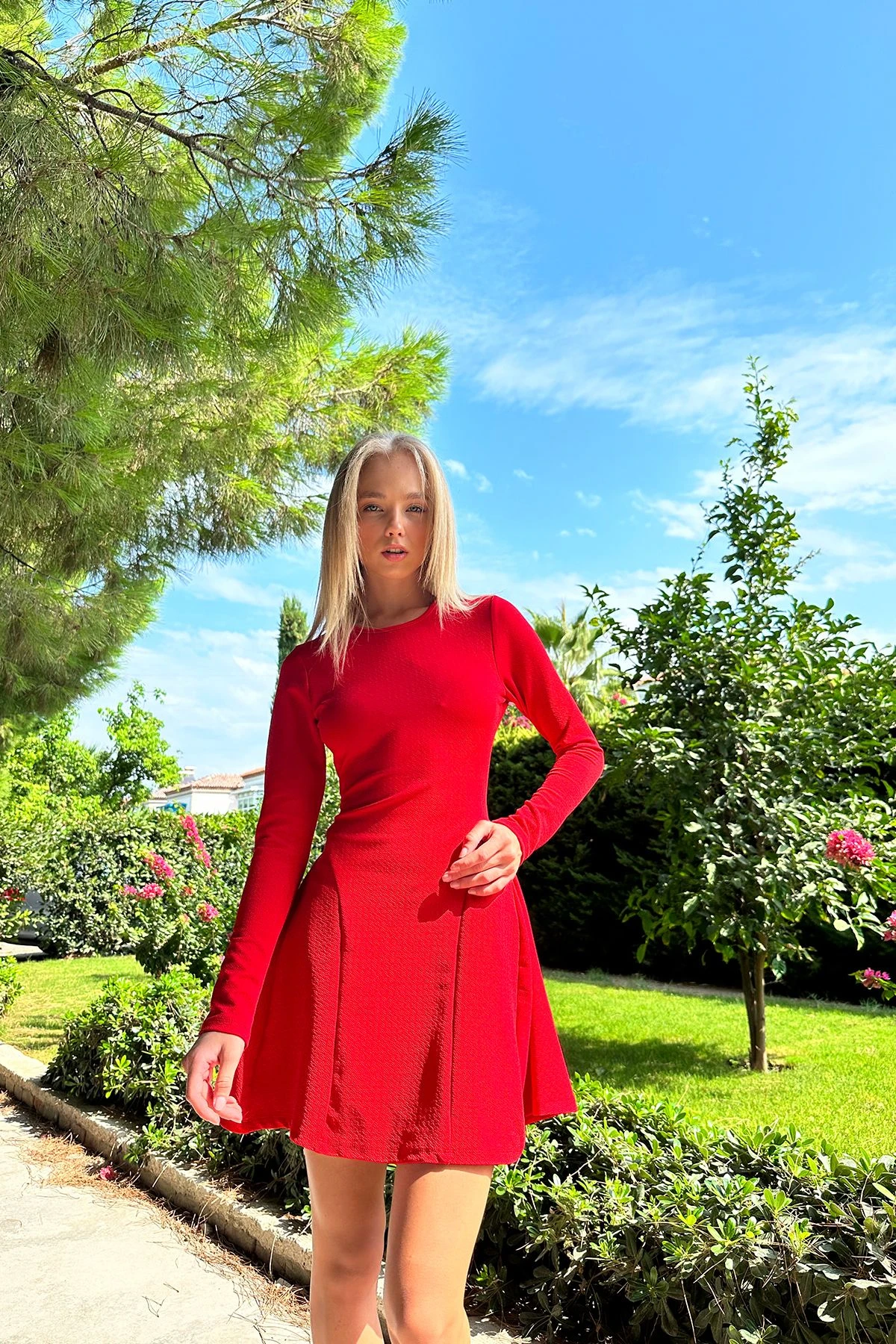 Trend Alaçatı Stili Kleid – Rot – A-Linie