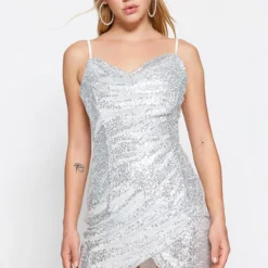 Trendyol Collection Kleid – Silberfarben – Wickelschnitt Damen Kleider 444142186