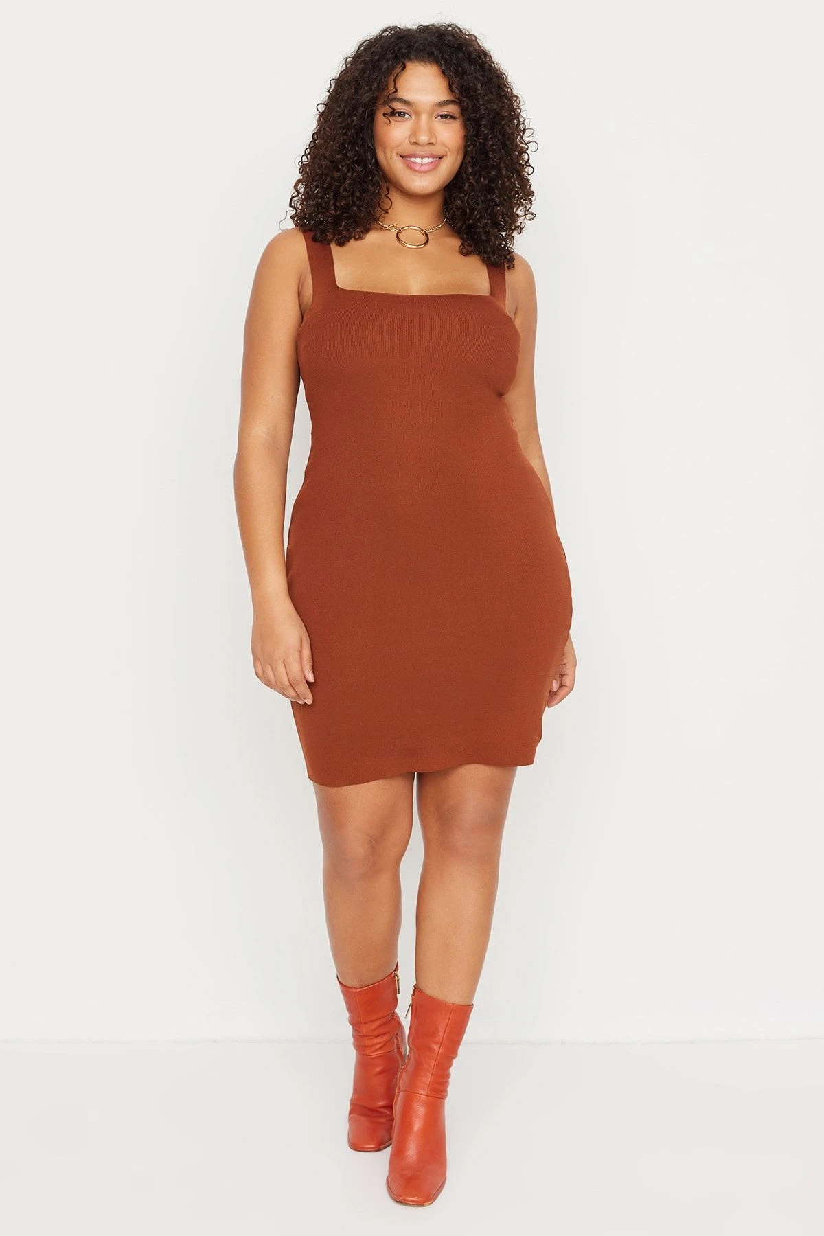 Trendyol Curve Große Größen In Kleid – Braun – Bodycon Damen Kleider 362324608